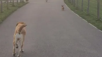 meine Tochter hingeht, der Hund geht mit.