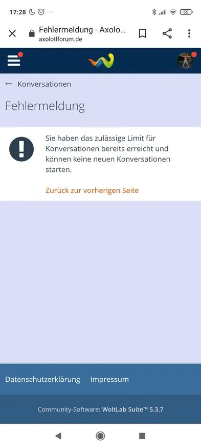 Zitat"xx hat das zulässige Limit für Konversationen bereits erreicht und kann an keinen neuen Konversationen teilnehmen.